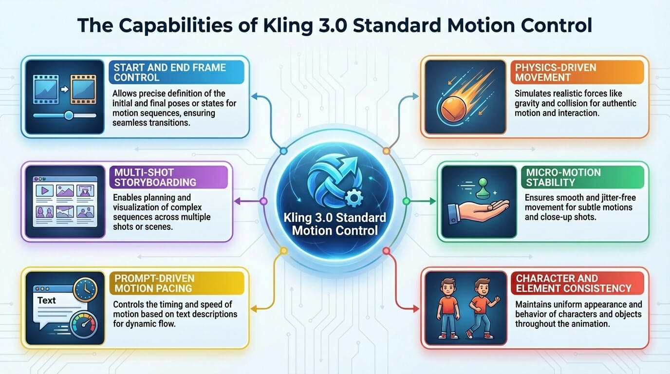 The capabilities of Kling 3.0 Standard Motion Control are visualised below.