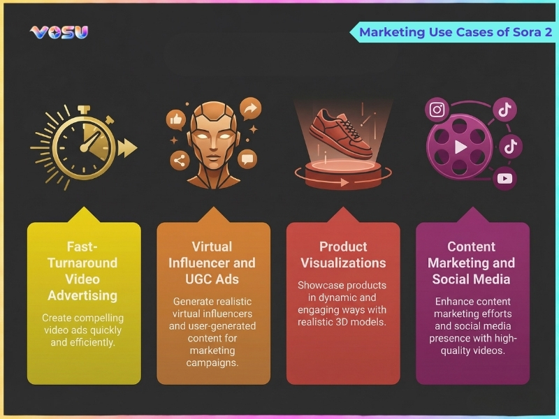 These applications show how Sora 2 supports creators, marketers, educators, researchers and individuals. VosuAI allows them to turn ideas, scripts and experiments into high quality videos across multiple formats and use cases.