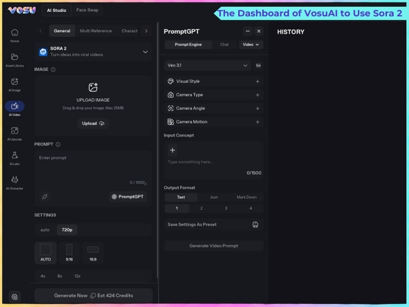 The dashboard of VosuAI to use Sora 2 is visualised below.